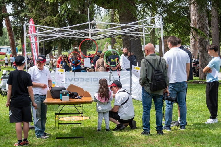 Emozionanti esibizioni dal vivo in piazze, fiere e feste, dove adulti e ragazzi possono vivere da vicino la magia del volo e scoprire come nascono le manovre più spettacolari.
