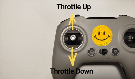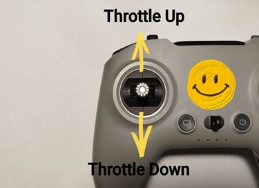 Lo Stick Sinistro, spostandolo in AVANTI o INDIETRO, comanda la funzione del “THROTTLE”, (detto più comunemente GAS) e ha il compito di ALZARE o ABBASSARE il drone e di dare PIU’ o MENO POTENZA quando il drone è in movimento!
