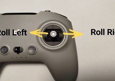 Sempre con lo Stick Destro del Radiocomando, se lo spostiamo a SINISTRA abbiamo il Comando del “ROLL LEFT”, ovvero il Drone si Inclina sul Lato Sinistro sull’Asse Y Naturalmente, se lo stesso Stick lo spostiamo a DESTRA, avremo il Comando Contrario chiamato “ROLL RIGHT”cioè che il Drone si Inclina a Destra sempre sull’AsseY