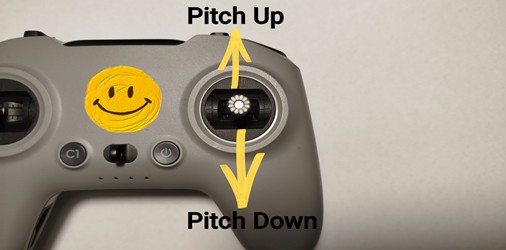 Lo Stick Destro, invece, spostandolo in AVANTI, comanda la funzione del “PITCH UP”, e ha la funzione di Abbassare il Muso del drone sull’ “Asse X” ! Di conseguenza, spostandolo all’ INDIETRO, si passa alla Funzione Contraria “PITCH DOWN”, dove il Drone Rialza il Muso e si Abbassa di Coda !