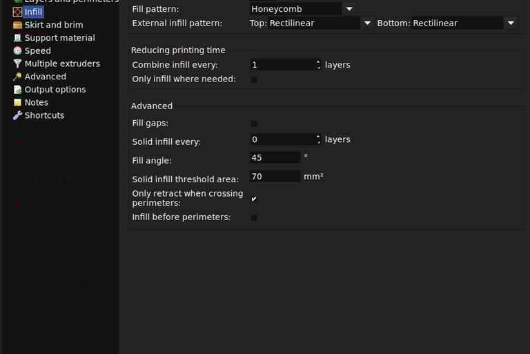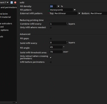 quantità di riempimento (infill)