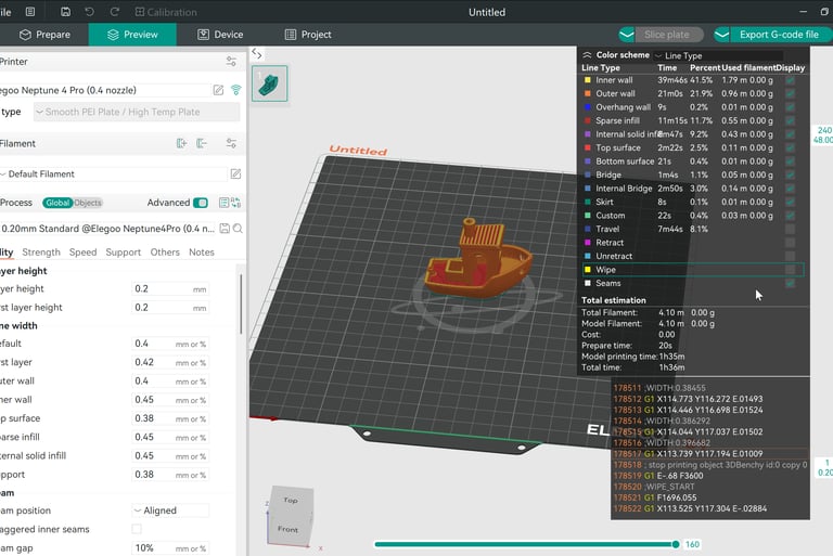 Prima di salvare il G-code, lo slicer ti mostra un’anteprima strato per strato.