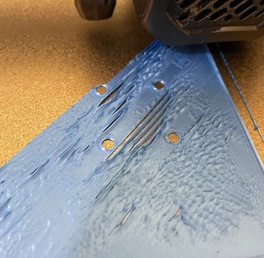 Elephant foot (base schiacciata)Base più largaUgello troppo vicino, piatto caldo✔ Alza leggermente ugello